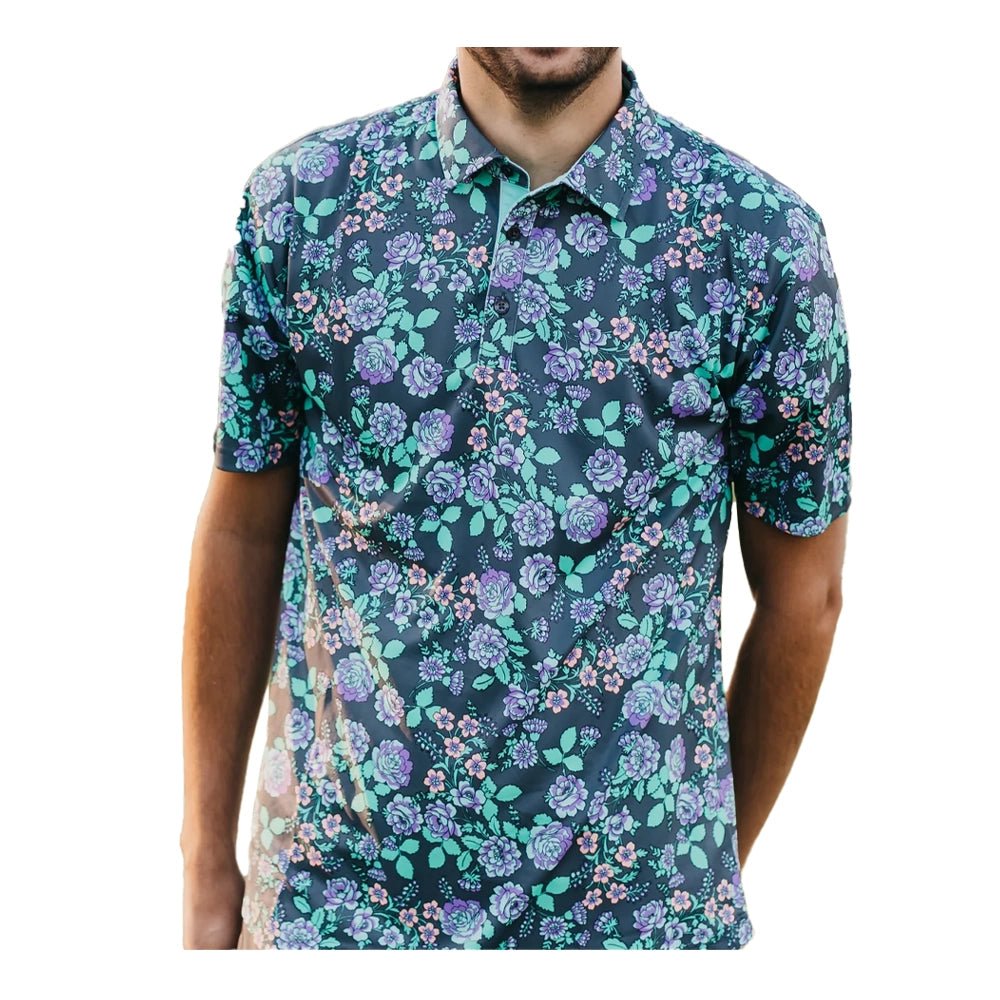 Swannies' Chase Polo is a vibrant addition to your golf wardrobe, combining sustainability with style and performance. Chase will have you glowing like you're under a blacklight in the middle of the day. The party never ends with this floral golf polo.