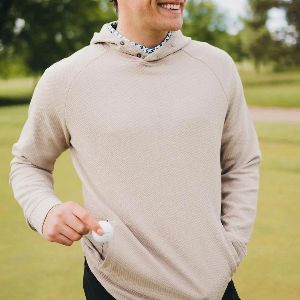 The Swannies Luke Hoodie combines the laid-back comfort of a hoodie with a refined herringbone texture for an elevated look. Built from a premium cotton-blend knit, it delivers stretch, softness, and style—perfect on the course or off. All the coziness of a classic hoodie, dressed up with a touch of sophistication.