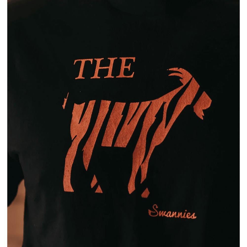 The Swannies Tiger Goat Tee shows some love to the GOAT. A solid black tee with tiger stripe goat graphic, this tee is perfect for any occasion. Made from 100% cotton, the Tiger Goat Tee will be a go-to in your wardrobe.