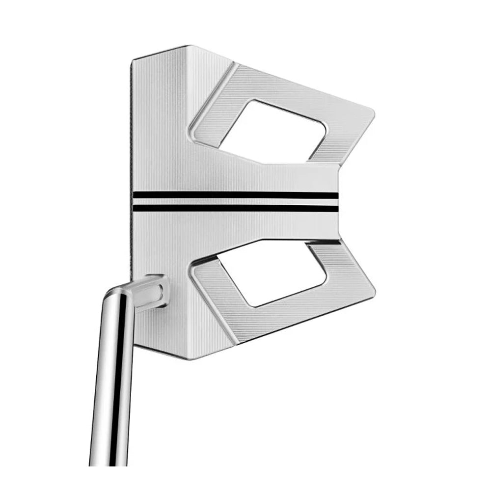 Simple Two-Line Alignment A pair of unbroken, elongated sight lines precision milled from the putter face's leading edge to the very back create a simple visual track for confident alignment.