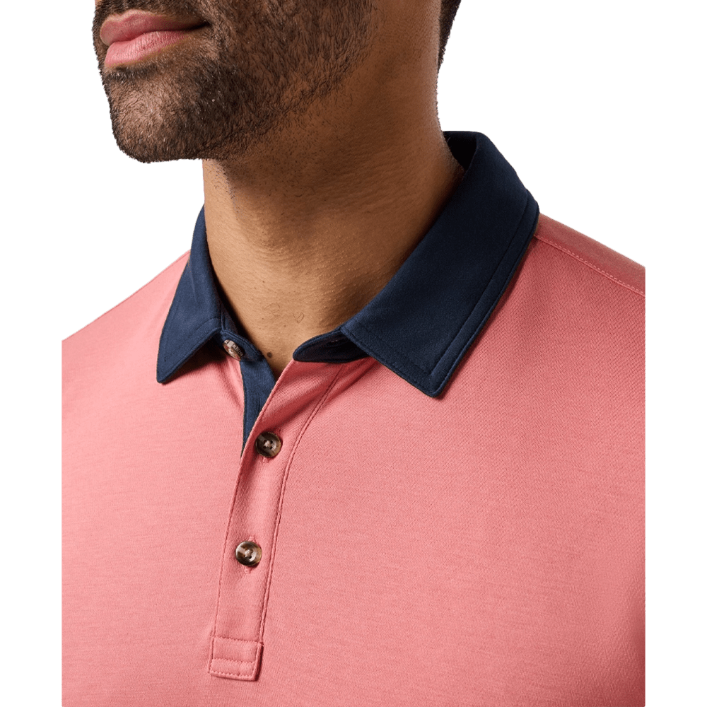 Crafted from a breathable cotton-polyester blend, this polo delivers lightweight comfort and all-day wearability. Built-in collar stays and a signature double-needle collar ensure you maintain a crisp, structured look through every swing and social moment. The scooped hem adds a contemporary silhouette that functions well tucked or untucked, giving you styling flexibility wherever your day takes you. Available in multiple colors, it’s a versatile addition to any golfer’s wardrobe.