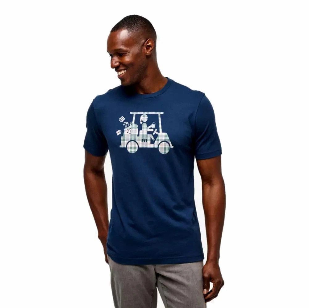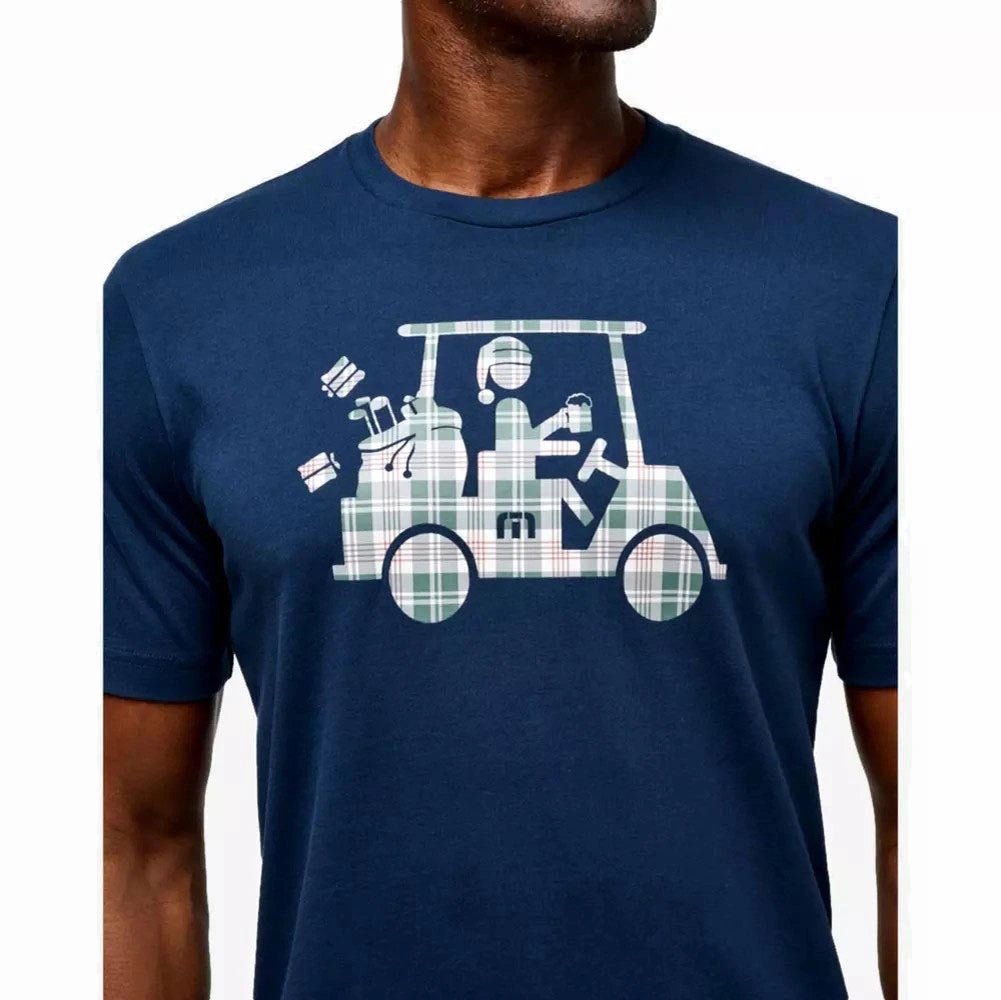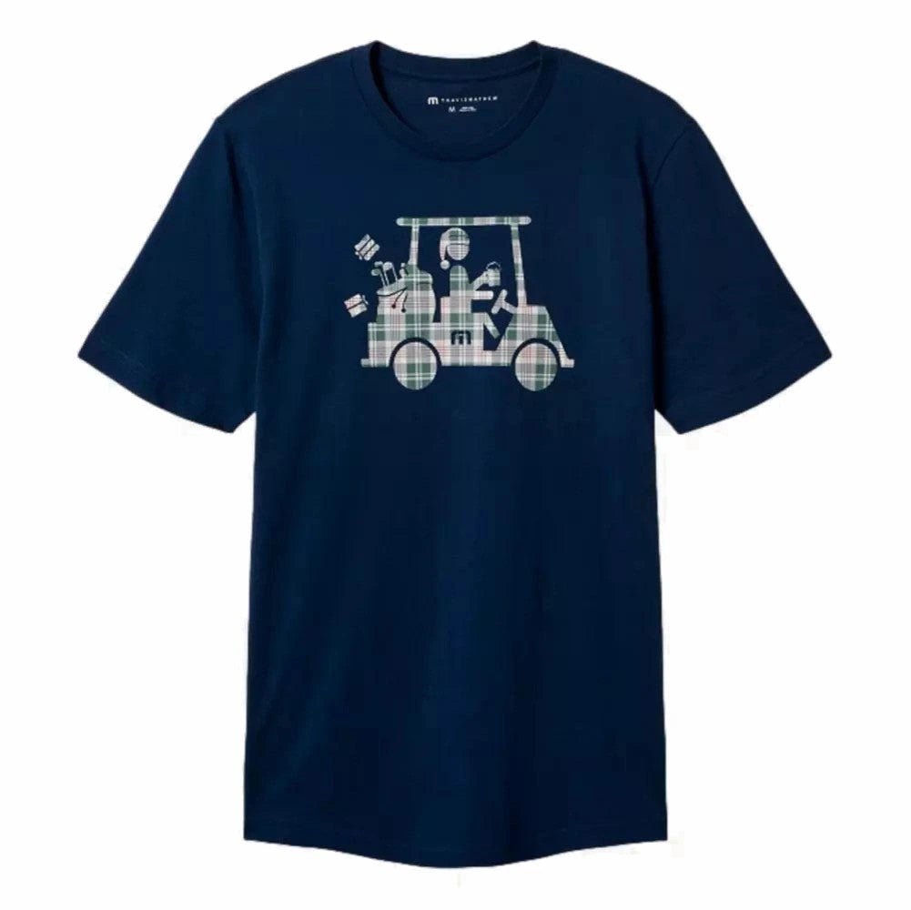 Throw some flair in your style with the TravisMathew Candy Cane Tee. This short sleeve tee shirt features a holiday golf cart in a plaid pattern pattern for some bold festive style. Made with ultra soft cotton, it brings comfort and durability to the table. Ideal for golf enthusiasts looking for some festive style.