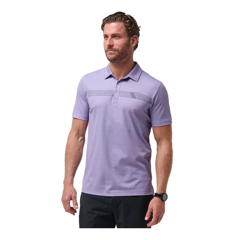 Embrace the island lifestyle with the Travis Mathew Ukulele Sunrise Golf Polo. This stylish golf polo combines a vibrant chest tripe print with technical features for a comfortable and eye-catching option on the course or anywhere you want to feel relaxed and stylish.