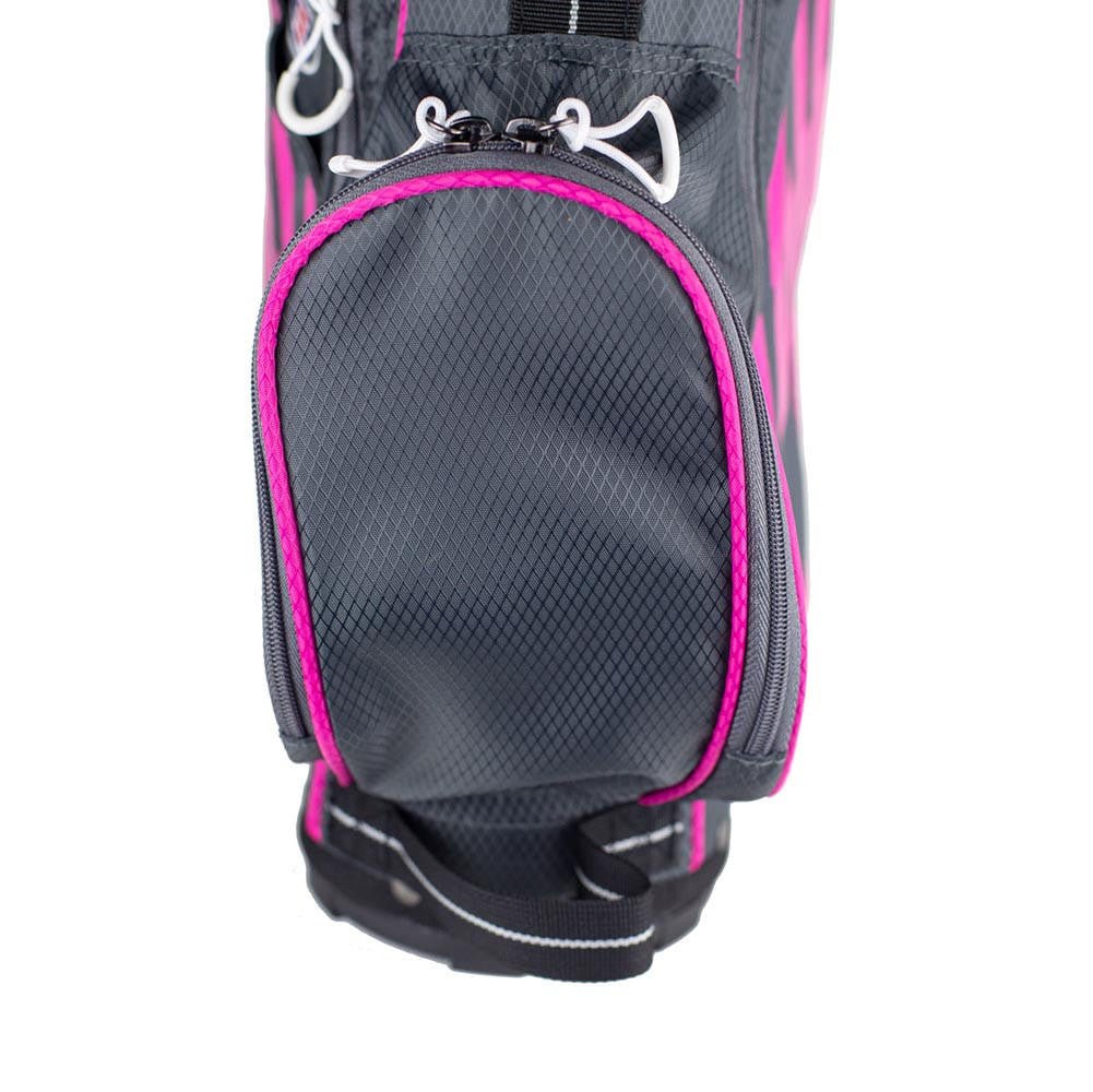 This stand Bag is lightweight and has five generous pockets for golf balls, tees and course necessities. Adjustable dual carry straps with plush adding make walking the course a breeze.