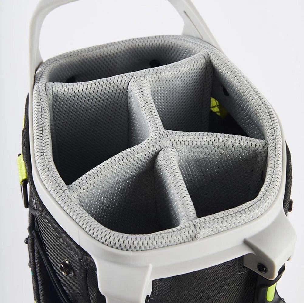Built for all-day play, the Aero Carry Bag features a quick-deploy stand system that sets up in seconds and keeps your gear stable even on uneven ground. A stable base and ergonomic design ensure the bag stands securely when loaded or unloaded. Multiple storage options give you space for apparel, accessories, and mid-round essentials without unnecessary bulk, so you stay organized without feeling weighed down.