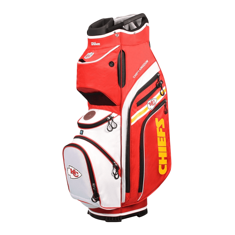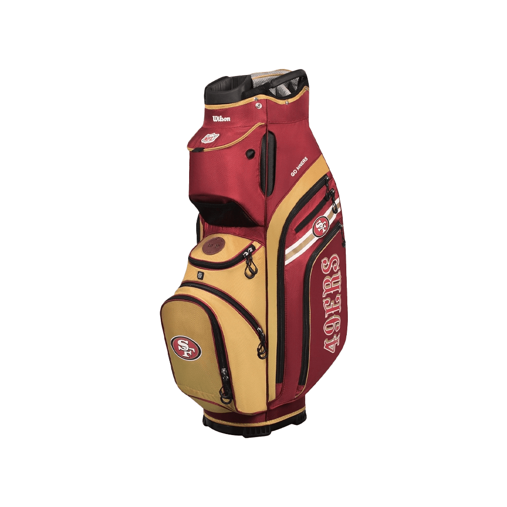 Cruise the course in ultimate team spirit with the Wilson NFL Cart Bag. This spacious bag boasts bold team logos and colors, allowing you to showcase your fandom while keeping your clubs organized and readily accessible.