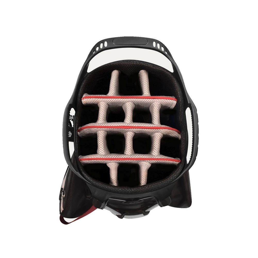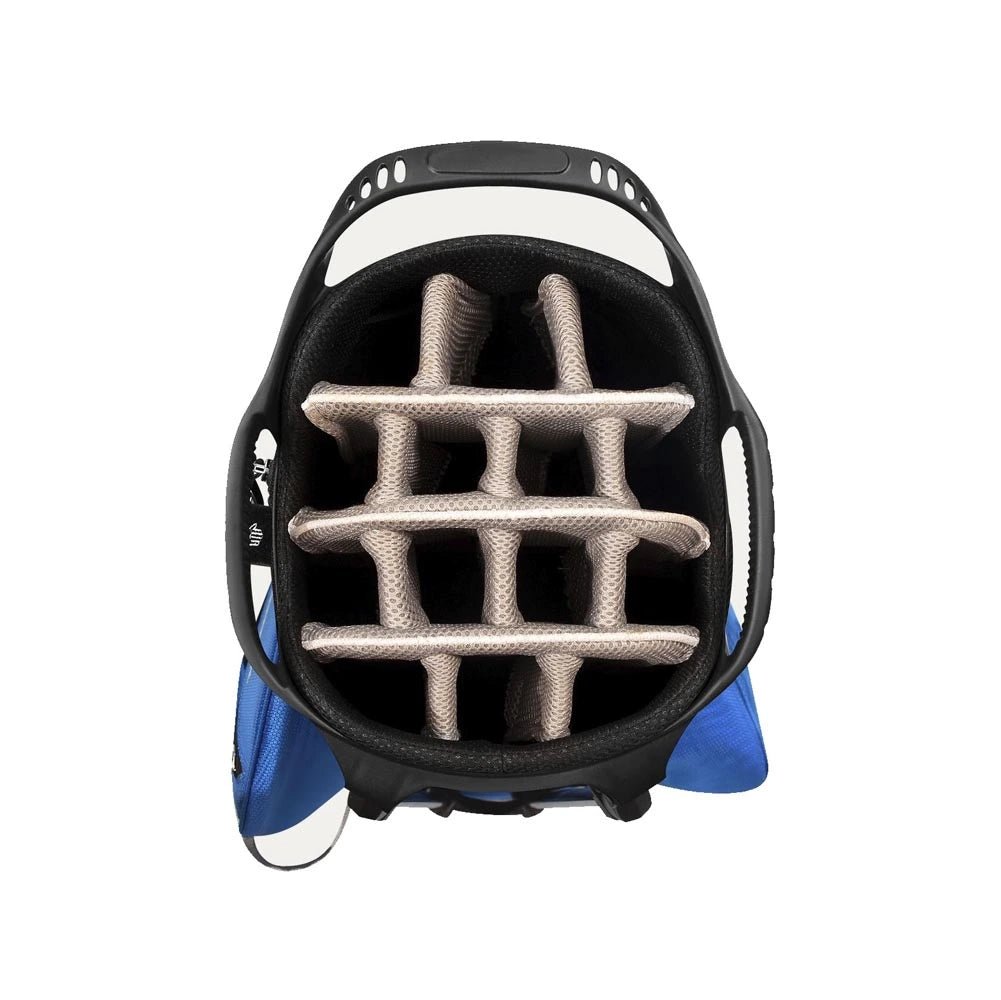 Lightweight sturdy construction featuring player-appreciated details like beverage pocket and magnetic closure GPS pocket, the NFL Stand Bag’s ergonomic double shoulder straps and a quick-activation legs make it easy to stand and use, while premium NFL logos and approved colors show everyone which team has your allegiance. A 9.5 inch 14-way top provides a dedicated slot to each one of your clubs.