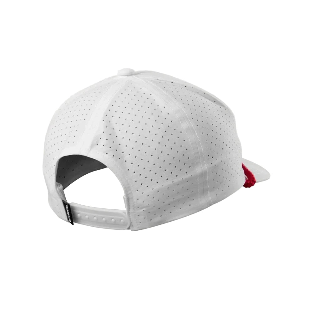The perforated back panel enhances airflow for improved breathability on warm days, helping you stay comfortable and focused. Finished with an adjustable snapback closure and a semi-curved bill, this hat delivers a secure fit and a polished on-course look.
