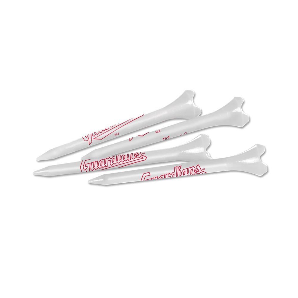 Forty 2 3/4" tees in vibrant Cleveland Guardians colors printed with team name. Made from ultra-strong material, so order a pack and take a swing. Officially licensed.